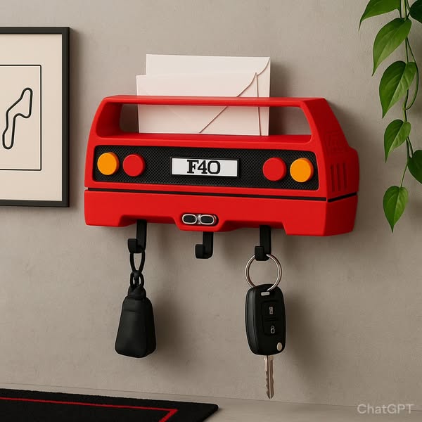 Dá estilo à tua entrada com este suporte de chaves inspirado na traseira do icónico Ferrari F40.Decoração funcional e cheia de personalidade.