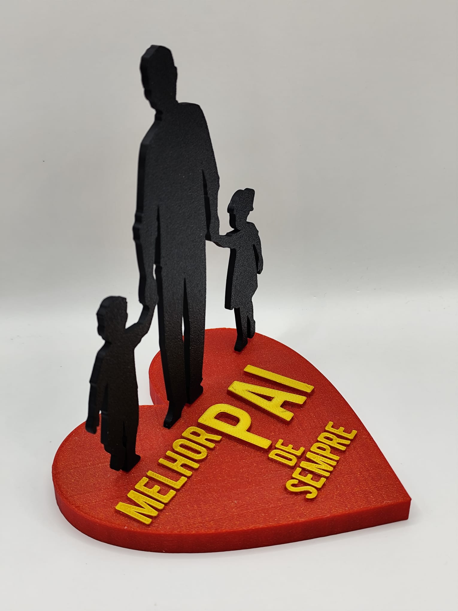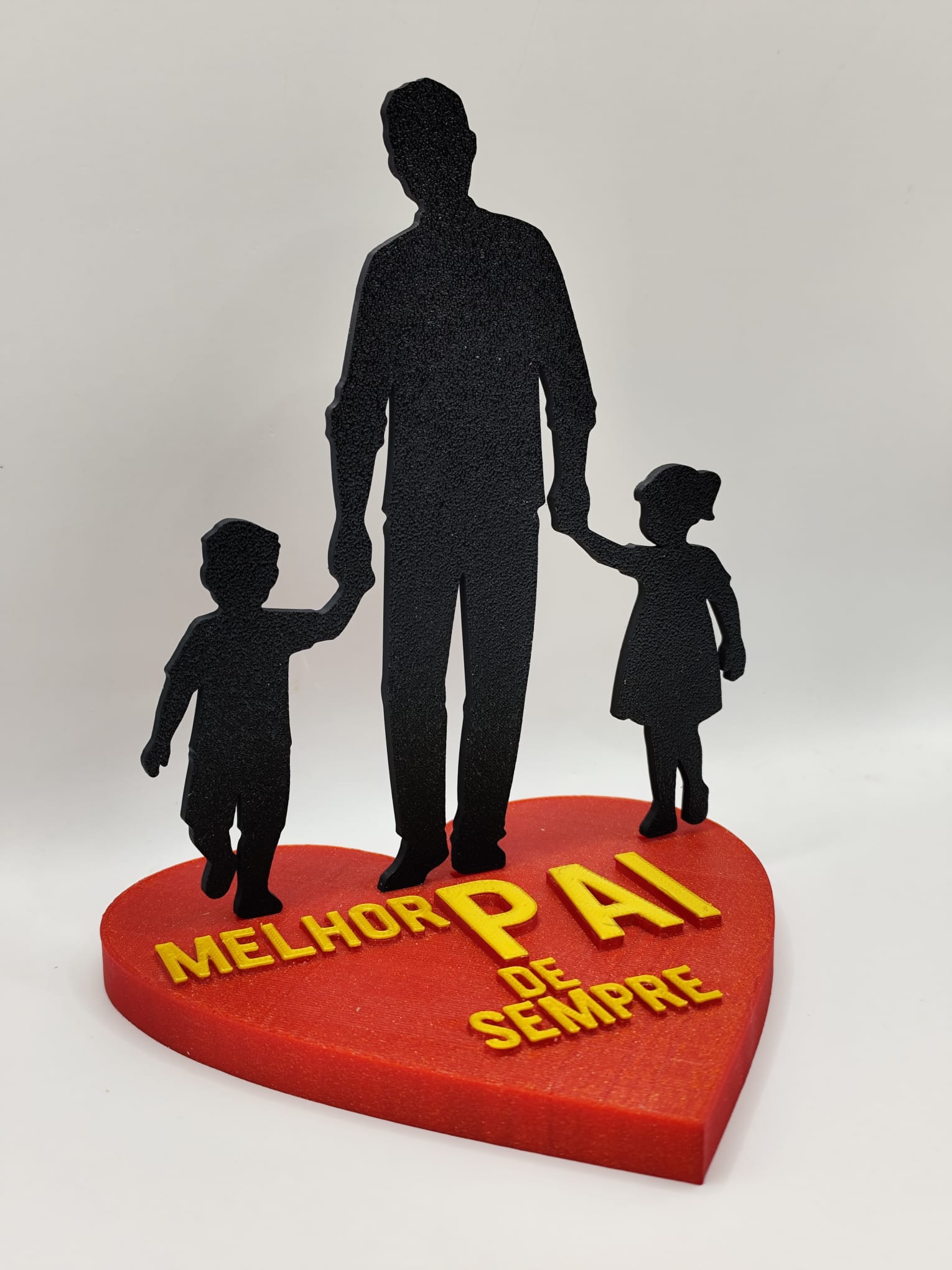 Esta peça emotiva é uma homenagem perfeita ao Melhor Pai de Sempre! Com uma base em formato de coração, simboliza todo o amor e gratidão por quem sempre esteve presente. No topo, uma silhueta de pai com um filho e uma filha representa a união, proteção e cumplicidade entre pai e filhos.