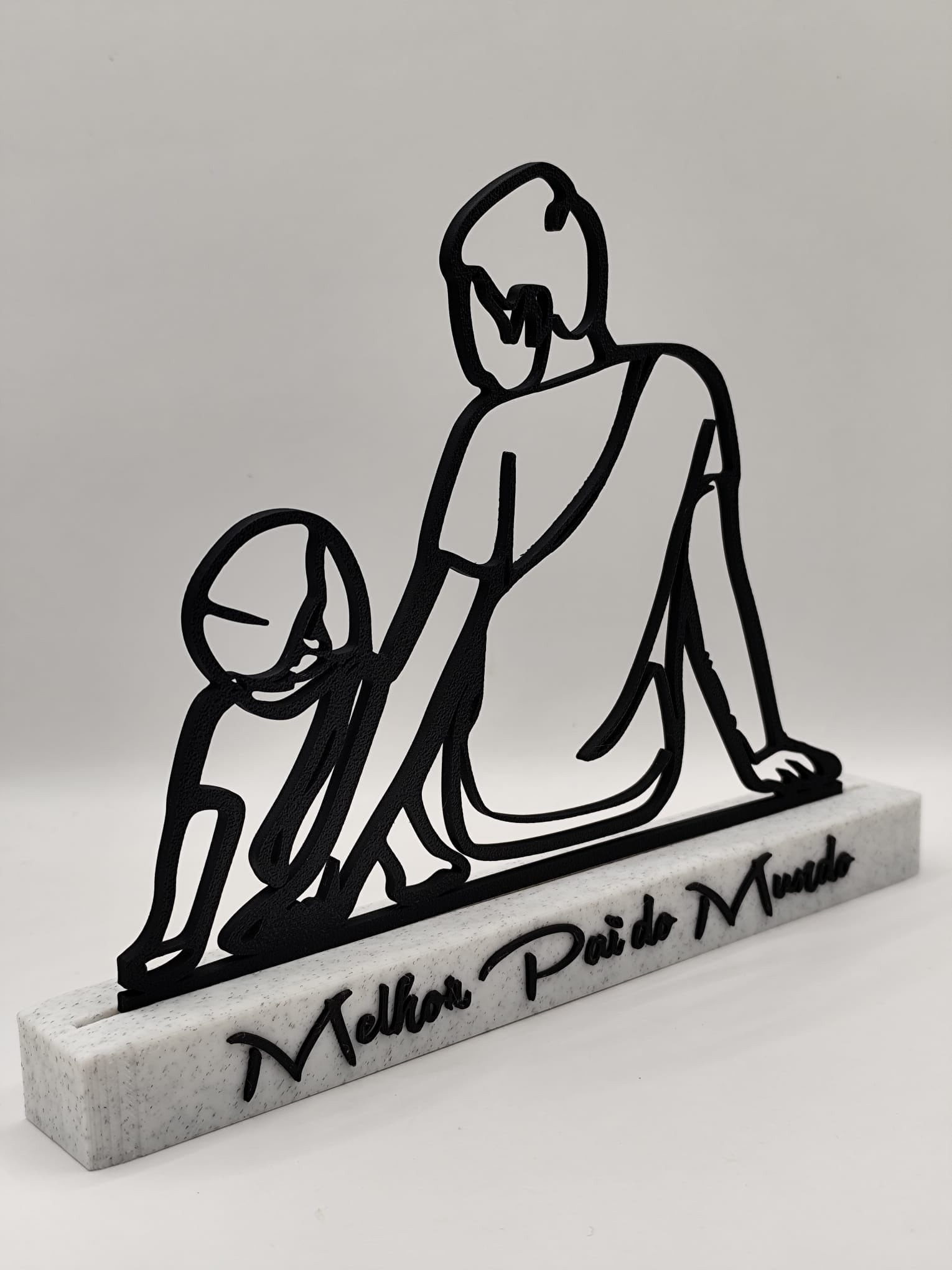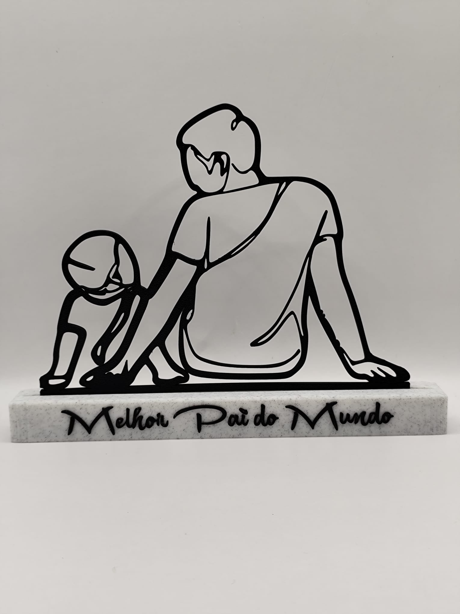 Esta peça especial é uma homenagem ao Melhor Pai do Mundo! Com uma base personalizada e uma elegante silhueta de pai e filho, representa o amor, a proteção e a ligação única entre pais e filhos. Perfeita para oferecer no Dia do Pai ou em qualquer ocasião especial, esta peça pode ser personalizada para incluir mais do que um filho, tornando-a ainda mais única e especial.