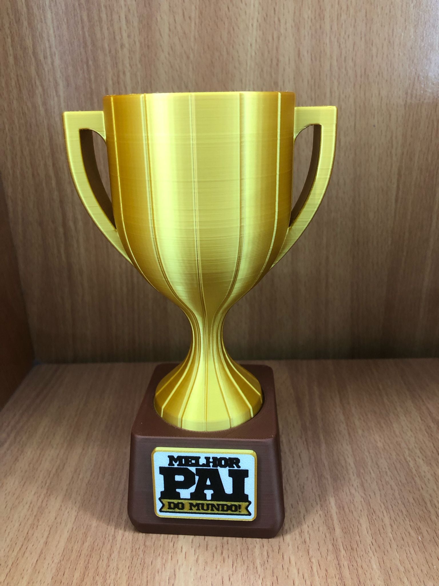 O design refinado da taça em dourado irradia elegância e distinção, enquanto a base em castanho confere uma sensação de solidez e durabilidade. A placa gravada com a mensagem "Melhor Pai do Mundo" adiciona um toque pessoal, transformando esta taça num tesouro significativo.